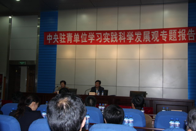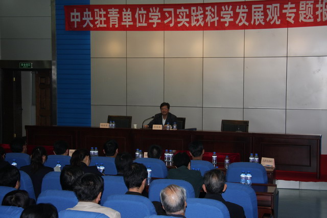 10月21日下午,由青海省委学习实践科学发展观第十检查指导组主办的中央驻青单位学习实践科学发展观专题报告会在青海盐湖所学术报告厅举行。省委第十指导组柴桂荣组长主持了报告会,邀请青海省委宣传部宣传处处长漆冠海作专题报告。中科院西高所、中科院青海盐湖所、青海省烟草局、青海省调查总队、青海省出入境检验检疫局、西宁海关和新华社青海分社等7个单位的240多人参加了报告会。