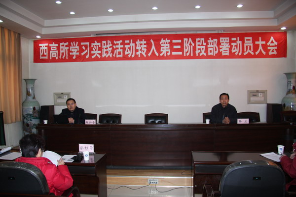 中共中国科学院西北高原生物研究所 深入学习实践科学发展观活动 简 报 ( 第 二十二 期 ) 西北高原生物研究所学习实践活动领导小组办公室 西高所深入学习实践科学发展观活动顺利转入第三阶段 赵新全同志作了第二阶段工作总结与第三阶段工作部署安排。赵新全同志谈到,西高所深入学习实践科学发展观活动第二阶段三个环节的工作,进展顺利,扎实有效,突出实践,效果明显,取得了阶段性成果。第二阶段的主要工作:一是继续深入学习,牢固树立了分析检查的思想基础;二是认真扎实准备,开好专题民主生活会;三是谋划未来发展,形成较高质量的分析检查报告;四是凝聚群众智慧,精心组织群众评议。 赵新全同志强调,按照中央要求和省委的部署,今天我们转入整改落实阶段,在整改阶段,第一,要精心制定工作方案,明确整改落实的目标任务;第二,要始终体现实践特色,集中力量解决突出问题;第三,全力推进体制机制创新,形成保障科学发展的制度体系;第四,要紧紧依靠群众,做好学习实践活动的总结和测评。 赵新全同志要求,在完成前两个阶段工作的基础上,要继续按照中央、省委和中科院党组的要求,认真做好第三阶段解决问题、完善制度阶段的各项工作任务。要提高思想认识,高度重视整改落实工作。要精心组织,切实落实整改措施。要加强领导,强化整改责任制,确保整改落实取得实效。要统筹兼顾,全面促进科研工作和管理服务工作。目前正是岁末年初的时候,工作繁忙,时间紧,任务重,领导班子一定要增强责任意识,统筹兼顾,有机结合整改落实工作和当前各项工作,做到“两不误,两促进”。 省委第十指导检查组组长柴桂荣同志充分肯定了西高所学习实践活动第二阶段的工作成绩,认为西高所严格按照省委的总体要求,紧密结合实际,突出工作重点,周密安排部署,精心组织召开领导班子专题民主生活会,认真撰写领导班子分析检查报告,积极组织群众进行评议,全面完成了第二阶段的各项工作任务。 第三阶段是制定整改落实方案解决突出问题创新体制机制的关键阶段,时间紧、任务重,柴桂荣组长结合实际提出四点要求。一是要坚持组织领导不松懈;二是要坚持工作力度不减弱;三是要坚持突出实践特色不动摇;四是要坚持学习教育不放松。 最后,柴桂荣同志希望西高所要总结成绩,深化认识,进一步增强搞好学习实践活动的责任感;要抓住关键,突出重点,扎实做好整改落实阶段工作;要加强领导,靠实责任,确保学习实践活动真正取得实效. 西高所党委副书记、学习实践活动领导小组副组长兼办公室主任韩发同志主持动员大会并作会议总结。韩发同志强调,今后要继续加强学习,深化对科学发展观的认识,做好体制机制创新建设,努力解决实际问题,,统筹兼顾,精心谋划,全面做好整改落实阶段各个环节的工作。 西高所党员60余人参加了动员大会,青海省委第十指导检查组的冶青云副组长出席了动员大会。