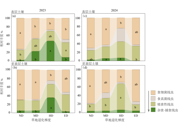 不同退化梯度高寒草甸土壤线虫营养类群组成变化