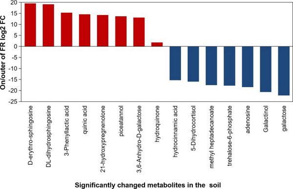 双孢蘑菇圈内外土壤中的代谢物显著变化