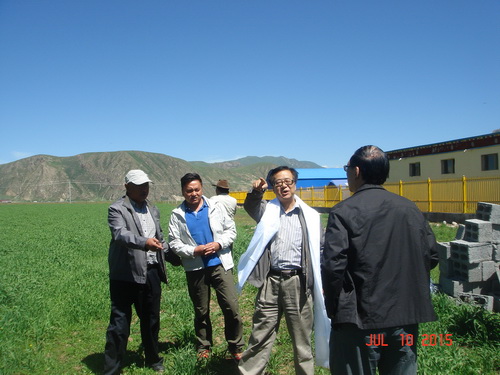 2015年7月10日-11日,科技部社会发展科技司陈传宏司长、资源与环境处黄圣彪处长,青海省科技厅周卫星副厅长一行赴玉树巴塘,对中科院西北高原生物研究所、青海省畜牧兽医科学院和青海省玉树藏族自治州玉树县草原站共同承担的国家科技支撑计划项目:“西南生态安全屏障(一期)构建技术与示范”第6课题“玉树地震灾区退化草地恢复及生态畜牧业技术与示范(2011BAC09B06)”进行了现场检查与调研。青海省玉树藏族自治州主管农牧科技的副州长尕桑,玉树州、市农牧局和科技局的领导,中科院西北高原生物研究所和青海省畜牧兽医科学院的课题实施专家一同参加了视察活动。 在玉树巴塘示范基地,视察组一行现场检查了课题的四大类实验示范基地和示范点:震毁迹地与退化草地恢复示范区、饲草基地建设示范区、牦牛平衡营养养殖示范点、可再生能源综合利用示范点,专题负责人周华坤研究员、施建军研究员分别就课题和专题的研究目标、研究思路、研究内容、获得成果、示范基地和示范点建设、地方合作、任务指标完成情况、社会经济效益等方面向视察组进行了详细介绍和现场解答。视察组一行同时参观了人工草地引种小区、一年生和多年生饲草基地示范区。。 视察组对课题取得的研究成果和示范基地的建设给予了高度评价,并对课题实施、任务完成及课题验收事宜给予了具体的指导性建议和要求。特别是“十三五”期间,对玉树等高寒地区的生态畜牧业发展,如何进行全链条顶层设计,兼顾基础理论、技术突破、模式集成及生态衍生产业、技术模式评价与区域生态安全体系建设。同时,在高寒牧区生态-生产和生活的“三生”体系功能提升和可持续发展等方面进行了探讨,并提出了具体的要求。