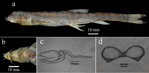 图2 a 整体;b 口部;c 肠胃;d 骨质鳔囊 |