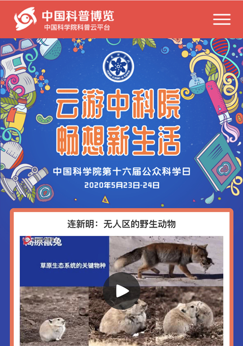 本届公众科学日以“云游中科院,畅想新生活”为主题,首次采用全程线上形式,开展了“云游青藏高原生物标本馆”“动植物科学绘画”“科学公开课——《无人区的野生动物》”“全景漫游西北高原所”等多种形式的线上活动。
