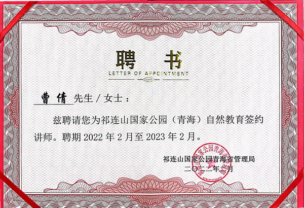 2月25日,祁连山国家公园青海省管理局、青海省教育厅召开了祁连山国家公园自然教育工作会议。会议表彰了2021年度祁连山国家公园自然教育优秀生态学校、优秀自然教育工作者。西北高原所青藏高原植物适应与进化学科组曹倩博士获得“2021年度优秀自然教育工作者”称号,并被祁连山国家公园管理局聘请为“祁连山国家公园(青海)自然教育讲师”,聘期2022年2月至2023年2月。