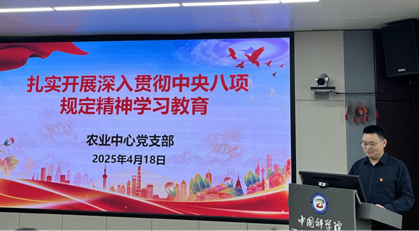为落实党中央开展深入贯彻中央八项规定精神学习教育的重大部署,扎实推进党支部党风廉政建设,4月18日上午,中国科学院西北高原生物研究所农业中心党支部召开党员大会,专题开展深入贯彻中央八项规定精神学习教育。会议由支部书记陈文杰主持,支部全体党员、发展对象和入党积极分子参加活动。