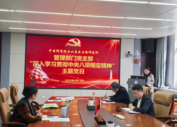 为深入贯彻中央八项规定及其实施细则精神,5月13日上午,中国科学院西北高原生物研究所管理部门党支部开展“深入贯彻中央八项规定精神 筑牢廉洁自律思想防线”主题党日活动,由支部书记赵海燕主持会议,支部全体党员参会。