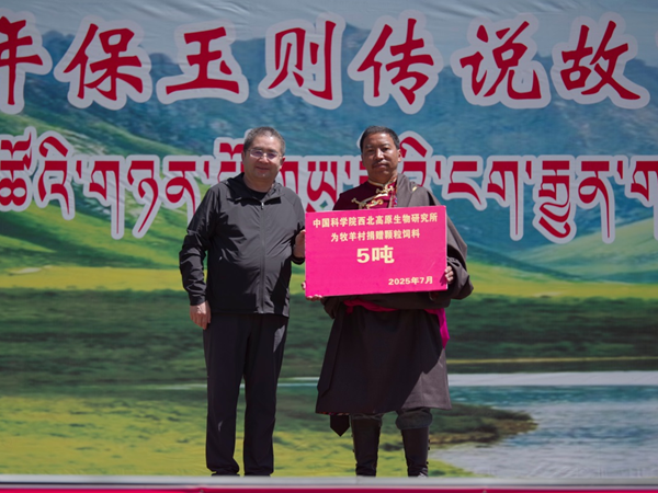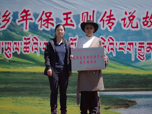 活动首日,帮扶团队与白玉乡政府举行科技帮扶启动仪式。海北站站长张振华研究员代表团队向白玉乡人民政府交接“高原生态和资源产业技术服务站”牌匾。该服务站的建立,标志着白玉乡拥有了集技术咨询、成果转化和人才培养于一体的常态化科技支撑平台,为当地生态保护与产业发展提供长效智力支持。民盟青海省委副主委、西北高原所李玉林研究员向对口帮扶的牧羊村捐赠5吨优质颗粒饲料,为缓解当地牧民在关键生产时节面临的饲料短缺困难提供帮助。