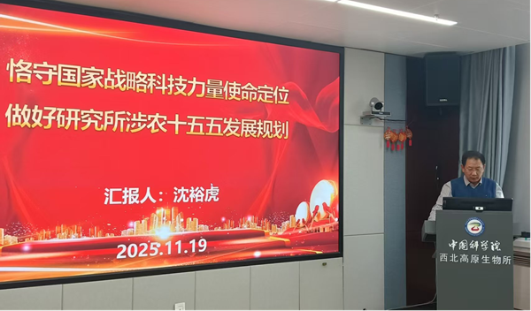 党委委员沈裕虎以《恪守国家战略科技力量使命定位 做好研究所涉农十五五发展规划》为题讲授专题党课。以《中共中央关于制定国民经济和社会发展第十五个五年规划的建议》和农业农村部《全国农业科技创新重点领域(2024-2028)》为切入点,解读中国科学院在涉农领域的重点布局,结合研究所的特色优势,围绕高寒生物种质多性状协同改良与种源创新等方向,阐述研究所涉农十五五发展规划的初步设想。