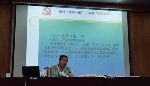 11月29日下午,中国科学院西北高原生物研究所科研二党支部、研究生党支部联合举办“两学一做”专题党课,特邀西宁市委党课讲师团讲师秦东林作题为“学习党章、贯彻党章、维护党章”专题讲座。会议由科研二党支部支部书记孙菁主持,科研二党支部及研究生党支部的五十余名党员参加了党课学习。