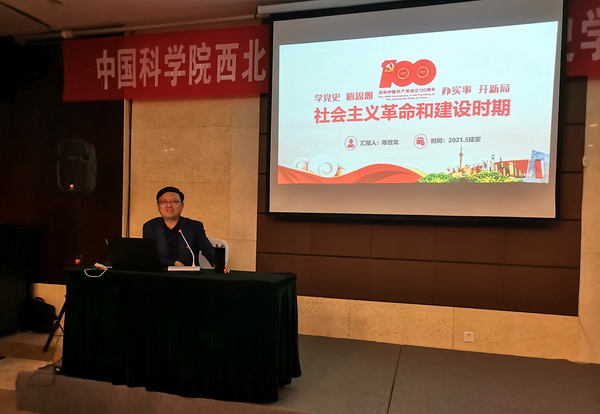 随后,所长陈世龙进行了党史学习教育第二专题导学,以《社会主义革命和建设时期的历史》为题做了党课报告。报告从社会主义革命和建设时期的探索阶段及特征、社会主义时期的探索历程、社会主义时期主要矛盾的正确认识和表述、中国从新民主主义向社会主义的转变问题、建设有中国特色的社会主义理论的形成与发展以及运用辩证唯物主义观点,客观、公正地正确认识党和国家在革命和建设中的失误等六方面,深刻阐述了中国共产党领导人民开展以实现社会主义革命和建设为历史任务的伟大斗争,实现了从新民主主义到社会主义的历史性转变。党领导巩固新生人民政权,快速恢复国民经济,创造性地进行社会主义改造,确立社会主义基本制度,独立自主探索符合中国国情的社会主义建设道路。