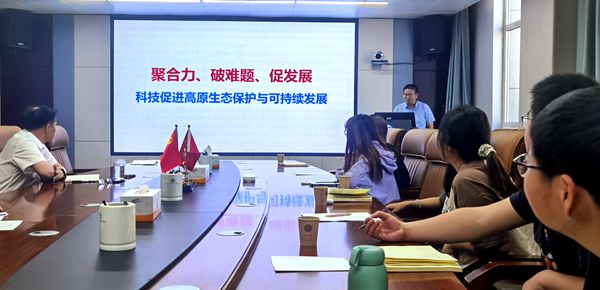 徐世晓作“聚合力、破难题、促发展 科技促进青藏高原生态保护与可持续发展”的专题党课报告,报告从聚合力、破难题、促发展,建制化科研新范式和青藏高原生态文明新高地三个方面系统讲述了学习贯彻习近平新时代中国特色社会主义思想主题教育总要求的具体实践,并对科技促进高原生态保护与可持续发展的现状调研、问题梳理、模式借鉴和破题举措进行了详细介绍。徐世晓勉励大家应全力聚焦国家重大战略布局,切实用习近平新时代中国特色社会主义思想指导科技创新工作,推动青藏高原生物多样性与生态保护事业向纵深发展。