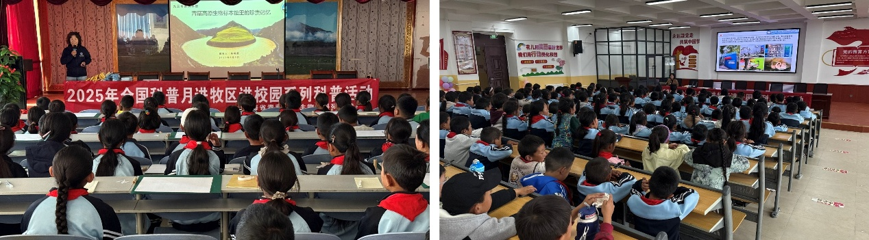 在民和县东垣小学、民和县马营镇中心学校、祁连县第一完全小学、祁连县民族寄宿制小学,科普基地高级工程师陈晓澄首先为同学们带来了《植物标本采集与制作》科普讲座,通过生动的讲解和丰富的图片展示,介绍了植物标本采集目的、方法、保存、鉴定及研究的意义。在海北州祁连县阿柔乡寄宿制小学、海北州祁连县默勒寄宿制小学,陈晓澄为同学们带来了《青藏高原生物标本馆里的珍贵记忆》的科普讲座,以生动故事串联起标本馆的发展脉络、珍稀标本资源及科学精神的现实映照。