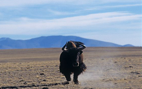 野牦牛又叫野牛,藏名音译亚归。偶蹄目,牛科,牛亚科、牦牛属。是家牦牛的野生同类,典型的高寒动物,性极耐寒。青藏高原特有牛种,为国家一类保护动物。分布于新疆南部、青海、西藏、甘肃西北部和四川西部等地。栖息于海拔3000 —6000米的高山草甸地带,人迹罕至的高山大峰、山间盆地、高寒草原、高寒荒漠草原等各种环境中。