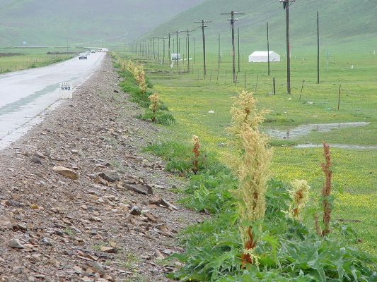 青海省果洛藏族自治州路边的野生大黄---像是卫兵一样排列在路的两边,蔚为壮观!