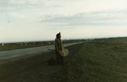 图2、吴翠珍在去阿尔泰路上等车 图3、在伊宁建设兵团合影