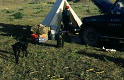 图10、1992年吉隆佩古湖的渔获物 图11、1993年吴翠珍在定日河边的野餐