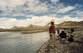 图16、日喀则兽医站大院里的小湖 图17、日喀则雅鲁藏布江撒网