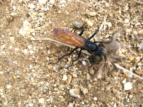 这种独居的五彩胡蜂会利用触角上的毒素麻醉比自己还大的狼蛛,让自己的孩子来当食物享用。不过它攻击性并不强,也极少叮咬人类。莱斯里·鲍伊尔称,“你甚至要强迫它们才会叮咬你,不过叮起来的疼痛可是非同一般。”据叮咬研究专家施密特的说法称,被它叮咬的疼痛度仅次于子弹蚁,“它叮咬人时就象被睛天霹雳击中一样,人会不禁尖叫甚至因极度痛苦而扭动或翻滚,就象体内每一丝肌肉都被击中,这种感觉绝对是独一无二的。”