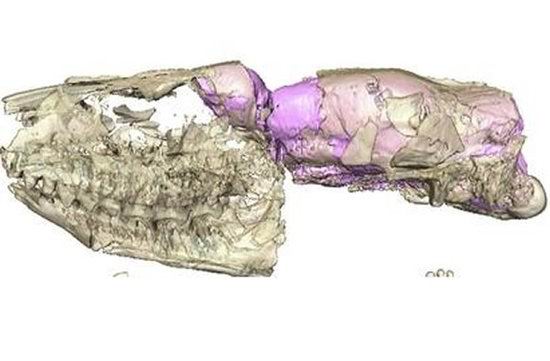 研究人员介绍道:“根据猪齿兽颅骨化石的颅腔复原模型形态学研究表明:雷比达猪齿兽的听觉能力高度发达,我们推测这可能与它们利用地面回声定位有关。同时它是一种行动敏捷,能快速移动,通常生活在洞穴里夜行性动物,这可能也与它们地面回声定位能力的演化有关。像回声定位如此特化功能的出现也反映了古代猪齿兽应具有非常特殊的大脑皮质结构。并且,这种史前猪齿兽较大的大脑容量以及大脑各部分的相对比例都与较进化的有蹄类动物非常相似,使得雷比达猪齿兽的大脑演化在较低级的有蹄类动物中尤为显著。”(来源:化石网)