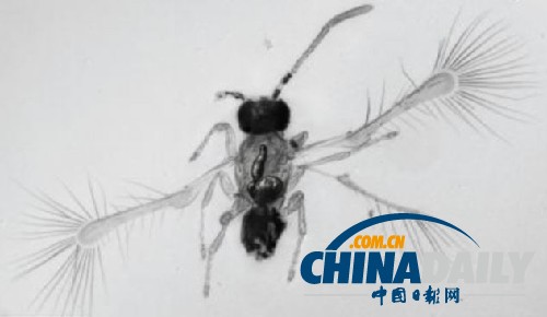 比如,世界上最小的飞虫、身长只有155微米的Kikiki huna就属于柄翅卵蜂科,而世界上已知的最小成虫也属于这一科目。 (信莲)