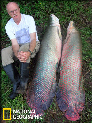 巨骨舌鱼是世界上体型最庞大的淡水鱼之一,主要分布在南美洲热带地区,尤其是巴西和圭亚那。它们能长到3米长,体重可达200公斤。它们通过一个原始的肺呼吸空气,并倾向于生活在氧气含量较低的逆流水中。对亚马逊河流域的人们来说,巨骨舌鱼是他们重要的食物来源。现在,对巨骨舌鱼的捕猎还在继续,但科学家已经开始担心它们的处境,尽管现在它们还没到达到濒危程度。
