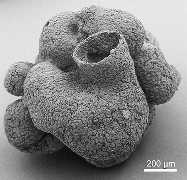 科学家将一块只有几毫米长的化石确认为已知最早的海绵,从而有助于解决关于海绵世系何时同更熟悉的动物世系背道而驰的争论。图中拍到的小块海绵生活在6亿年前,这比一些研究人员认为的海绵首次出现时间早了几千万年。图片来源:ZONGJUN YIN