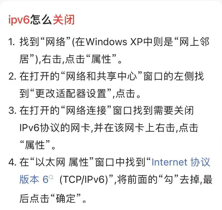 由于我所网络启用了ipv6,使用数据库是需临时关闭,关闭过程请参考下图。