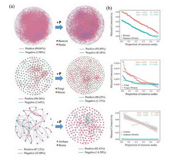 原生生物的加入对细菌、真菌和古菌网络的影响