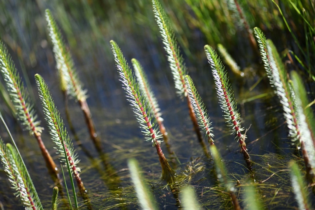 杉叶藻虽然名字里带着藻,但并不是藻类植物,是杉叶藻属多年生挺水草本植物,原属于杉叶藻科,现调整至车前科。杉叶藻为喜湿性植物,可在水中生长,又有一定抗旱能力,是改造低洼湿地的优质牧草之一,耐水淹,可沉于水中生长,并能充满水面。生长在池沼、湖泊、溪流、江河两岸等浅水外,沼泽湿地中的积水中也可成长。分布的海拔跨度较大,从40米的平原地区到5000米高寒地带均有发现。杉叶藻抗寒性较强,在-38℃能安全越冬。有雪覆盖的条件下,-40℃以下低温也冻不死。在青海的西宁、大通、湟源、乐都、海北、门源、祁连、海晏、刚察、同仁、泽库、共和、玛沁、达日、久治、玛多、玉树、杂多、囊谦、德令哈、乌兰均有分布。