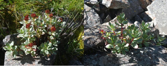 大花红景天之所以能够在高山环境中生存,得益于其在长期的进化过程中形成了一系列适应高海拔环境的特殊机制。它能够通过调节自身的生理活动来适应低温、缺氧、干燥及强紫外线等极端条件[15]。例如,其叶片的波状或圆齿边缘可能有助于减少水分蒸发,提高水分利用效率;而其根系则可能深入石缝中,以获取稀缺的水分和养分。