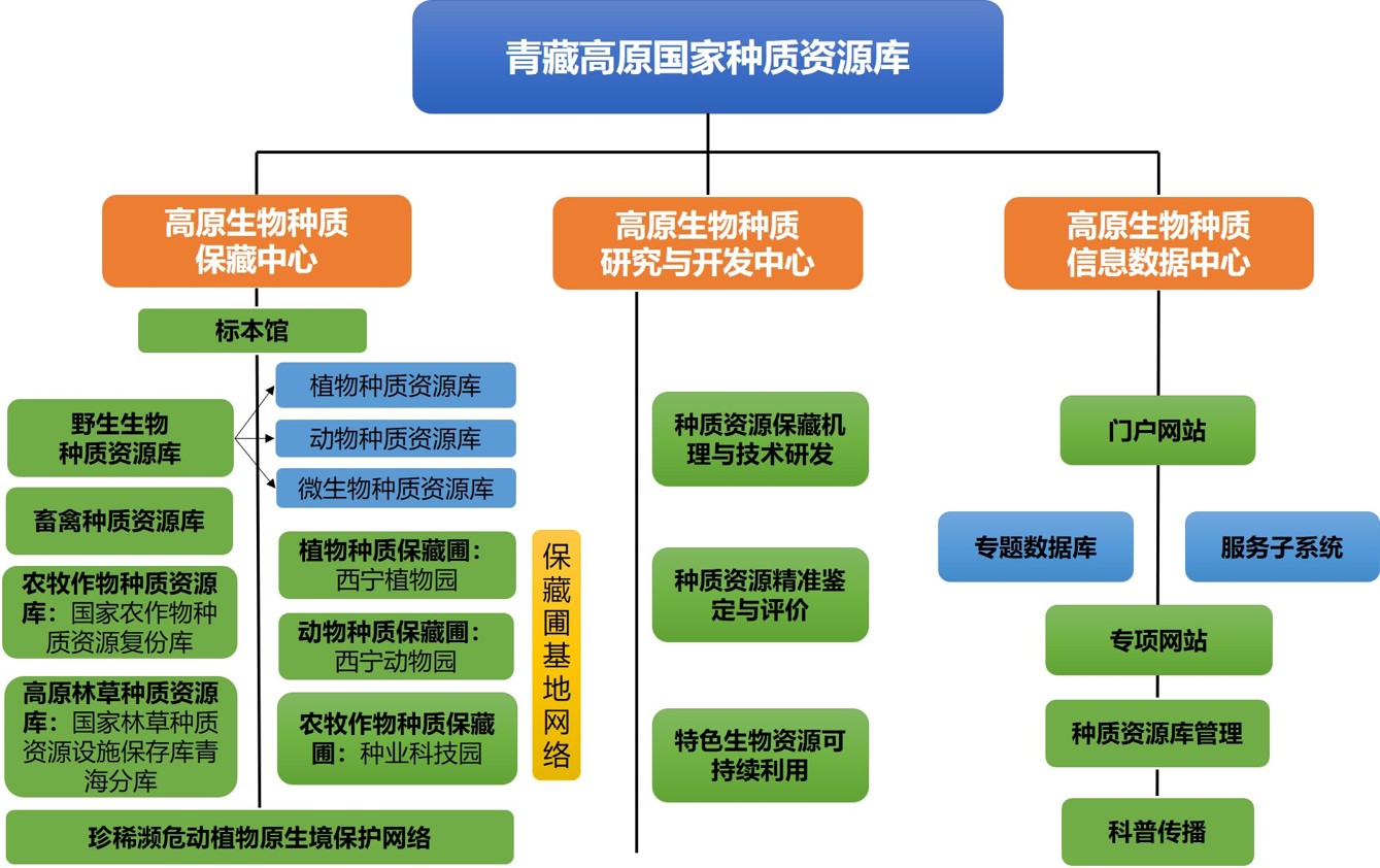 青藏高原国家种质资源库(简称“高原种质库”)围绕青藏高原生物多样性保护、生态安全和绿色发展的国家重大战略需求,构建由种质保藏中心、种质研发中心和种质信息数据中心三大功能区块组成的高原种质资源保藏、研究和共享体系,将平台打造为国际一流的高原生物种质保藏基地、科技研发基地、人才集聚基地、资源共享基地和科普宣传基地,建成为国际一流的保存青藏高原生物种质资源的“诺亚方舟”。根据《青海省十大国家级科技创新平台培育建设工作方案》(青政〔2022〕47号)精神,“青藏高原国家生物种质资源库”已列入青海省拟建十大国家级科技创新平台。