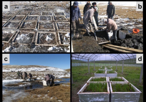 为了解决这一问题,贺金生课题组在海北高寒草地生态系统国家野外科学观测研究站利用中宇宙(Mesocosm)实验并结合宏基因组学方法(GeoChip 5.0),首次探讨了全球变化背景下高寒湿地三种温室气体排放的变化及其背后的分子生物学机制。