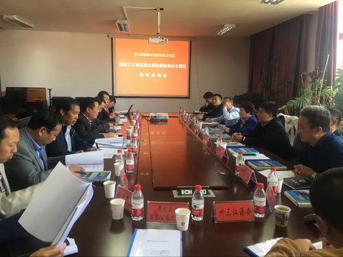 项目技术组组长、中科院西北高原所研究员周华坤对三江源黑土滩治理标准化示范区项目进行了讲解,他从示范区的内容、目的、意义、目标任务、组织管理、实施方案、建设的基本条件、保障措施及经费来源等几个方面进行了详细介绍。国家标准化管理委员会于欣丽副主任和青海省质量技术监督局副局长刘三江对本次会议给予了高度的肯定,希望利用好标准化这个尺度,为三江源区的黑土滩治理做出更大的贡献。