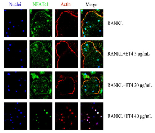 图2 ET4抑制破骨细胞分化标志蛋白NFATc1表达的激光共聚焦图