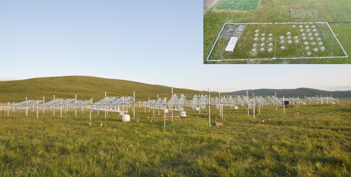 中国科学院西北高原生物研究所“高寒生态系统与全球变化”学科组与北京大学城市与环境学院等单位合作,于2011年在青海海北高寒草地生态系统国家野外科学观测研究站(海北站),建立了大型的“增温-降水改变”控制实验(图1)。通过野外实验,结合海北站连续32年的地面监测、以及青藏高原9个站点实验研究的Meta分析,探讨了气候变化对高寒草地植物群落结构和生产力的影响。论文 Shifting plant species composition in response to climate change stabilizes grassland primary production 于2018年4月17日在线发表在《美国国家科学院院刊》上。