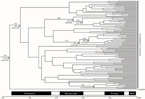 图2 基于山地虎耳草基因型进行的分歧时间估算示意图
