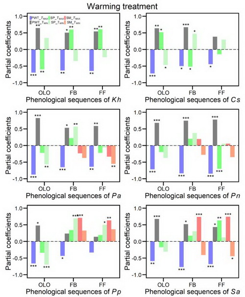 该研究结果于2019年5月以“Opposite effects of winter day and night temperature changes on early phenophases”为题在线发表在《Ecology》期刊上。