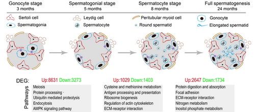 图:牦牛生殖细胞发育过程和基因表达差异分析示意图