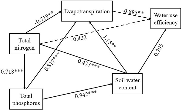 图2 环境因子对植物水分利用效率影响的结构方程图