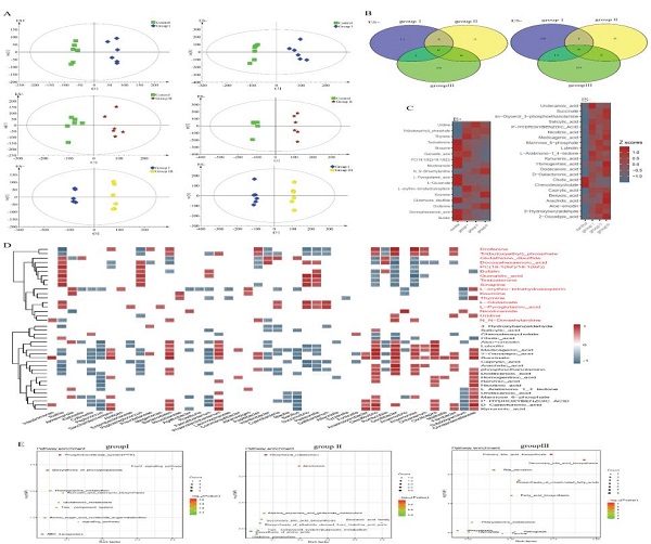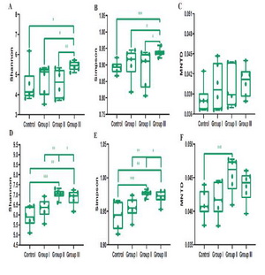 为探讨食物纤维对八眉猪肠道菌群结构及其代谢产物的影响,中国科学院西北高原生物研究所小哺乳动物适应性进化与管理学科组将24头3月龄杜×八二元杂交猪随机分为四组,分别在基础日粮中添加10% ( GroupⅠ),20% (GroupⅡ),30% (GroupⅢ)的蚕豆青贮,饲喂90天后屠宰,收集空肠和盲肠内容物。采用16S rRNA测序和色谱-质谱联用(LC-MS)技术测定和分析微生物结构、功能及非靶向代谢物。结果发现,盲肠和空肠微生物多样性均随着食物纤维含量的增加而增加,且盲肠微生物响应更为明显(图1)。空肠微生物共现网络结构的复杂性随食物纤维的增加而增加(图1)。NST(normalized stochasticity ratio)指数结果表明,盲肠菌群的构建主要受随机性过程主导(图2)。低、中纤维组中的空肠菌群构建以随机过程为主,而高纤维组的构建则由确定性过程主导(图2)。空肠菌群的代谢产物氨基酸和结合性胆汁酸浓度显著高于盲肠的,而盲肠中的脂肪酸和游离胆汁酸的浓度高于空肠的,这可能与双歧杆菌、乳杆菌和链球菌在空肠中富集以及疣微菌属和Agathobacter在盲肠中富集有关(图3)。盲肠中脂肪酸、碳水化合物以及有机酸等的浓度随着食物纤维的增加而升高,与梭状芽孢杆菌和颤杆菌克属的丰度呈显著的正相关关系(图3)随着基础日粮中食物纤维比例的增加盲肠菌群代谢物发生显著性变化,但是空肠菌群的代谢物没有明显改变。