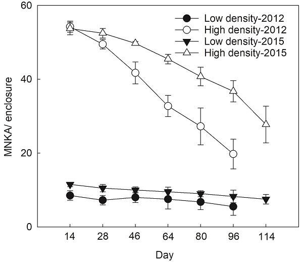 图5 2012年和2015建群者的FCM水平。数据已在之前的论文中发表(Bian et al.,2015;Yang et al., 2018)