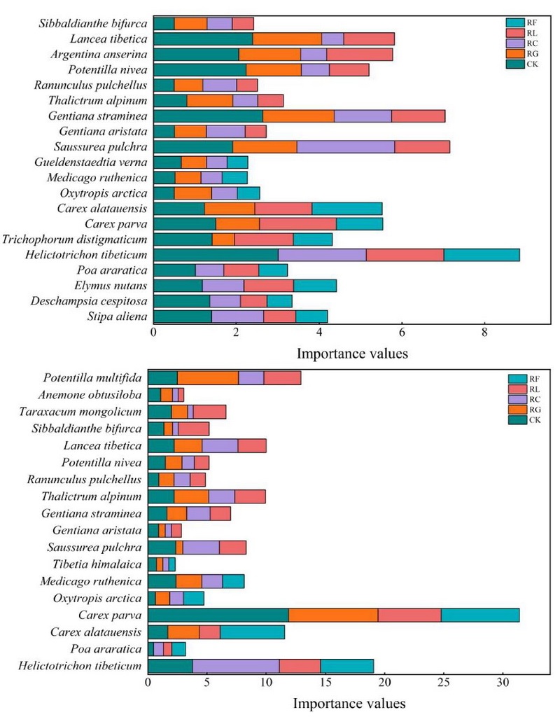研究结果以 Effects of short-and long-term plant functional group loss on alpine meadow community structure and soil nutrients 和 Effects of short- and longterm plant functional group removal on alpine meadow community niche 为题分别发表在 Ecology and evolution(中国科学院二区)和 Frontiers in Plant Science(中国科学院二区)。西北高原所博士研究生魏晶晶为第1作者,周华坤研究员为通讯作者。该研究得到青藏高原地球系统、资源与环境国家重点实验室开放课题(TPESER202209)、2020年森林草原生态保护与恢复第二批资金--青海祁连山国家公园祁连山国家公园青海区生物多样性保护项目(QHTX-2021-009)的共同资助。