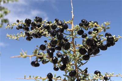 历史的车轮不断向前,很多曾经“隐于市”的事和物,都被逐一揭开面纱,其中一物就有黑枸杞。2011年,中国林业科学院荒漠化所研究员丛日春随着“万名专家服务基层行动计划”专家服务青海行活动,第一次在德令哈托素湖看见大片野生黑枸杞后,他高兴地说,黑枸杞的药用价值很高,市场售价也远高于普通枸杞,如果能实现人工种植,其生态效益和经济效益将十分巨大。科学研究证明,青海黑枸杞果实中含有的抗氧化“圣品”—花色苷(即花青素),其含量不仅高于新疆、宁夏等产地的“同胞兄弟”,甚至远高于有“浆果之王”之称的蓝莓。