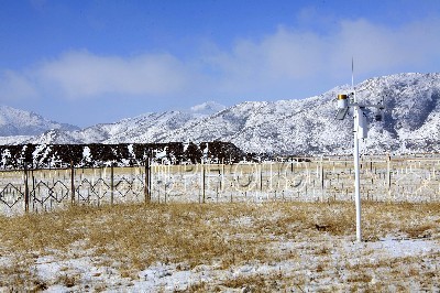 4月12日,青海果洛洲雪后天晴,中国科学院西北高原生物研究所三江源草地生态系统观测定位站一处天然草地观测点,与正在建设中的果洛机场相毗邻。据介绍,图中黑色人工土台处即为正在兴建中的果洛机场。