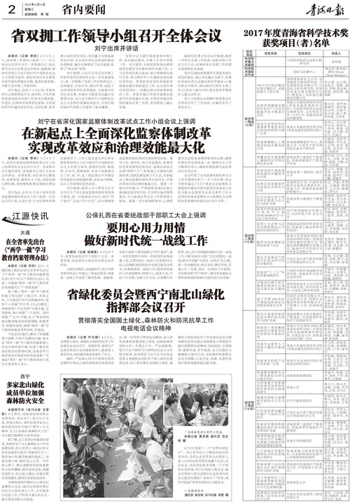 【青海日报】2017年度青海省科学技术奖获奖项目(者)名单