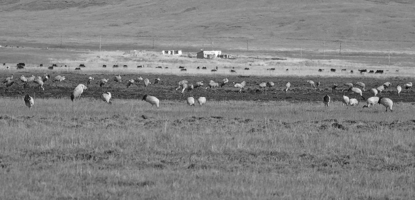 玉树嘉塘草原成群觅食的黑颈鹤。本组图片由生态管护员 日代 摄