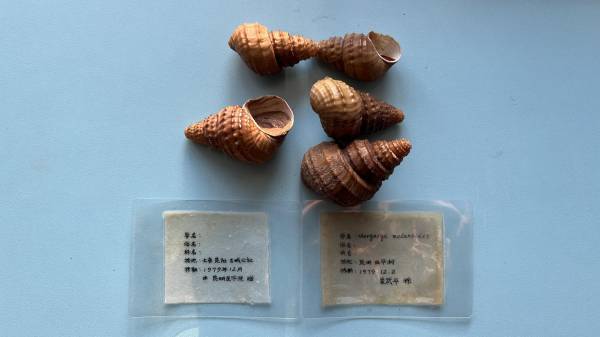 这件螺蛳标本是夏武平先生早期从事科学研究的见证。1979年12月2日,夏武平先生沿滇池西岸的公路,由龙王庙到海口,采集了一系列标本。他在西华村标本材料中发现一个新种,命名为张氏螺蛳,以纪念张玺先生对中国贝类学以及无脊椎动物学的卓越贡献,相关研究成果发表于1982年第四期《动物学研究》。