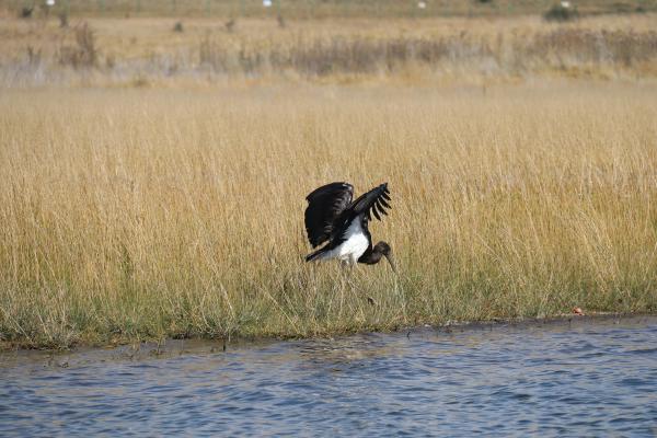 放归现场的黑鹳。青海野生动物救护繁育中心供图