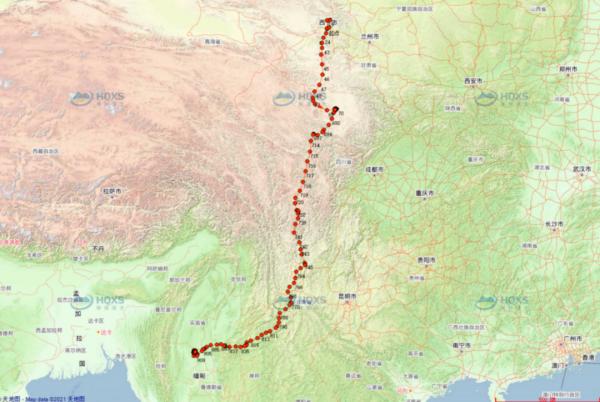 9月29日16时,黑鹳成功安装背负式卫星定位追踪器,9月30日13时,运输至巢穴附近实施野外放归,实时跟踪正式启动。从我国青海省一路飞往缅甸,黑鹳“鸟过留痕”,其迁徙路径、停留地点、飞行海拔高度、飞翔时间被精准监测记录。