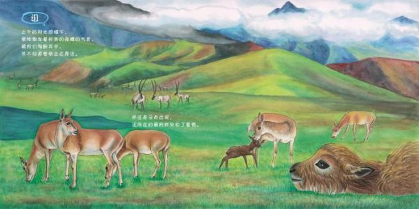 “绘本中的每一种动物都生息在三江源大地,它们各有各的灵气和天性,周而复始遵循着大自然的规律,它们是这里的主人。”创作者在上述绘本中写道,“有时,我们需要像仰望雪山一样仰望它们。”